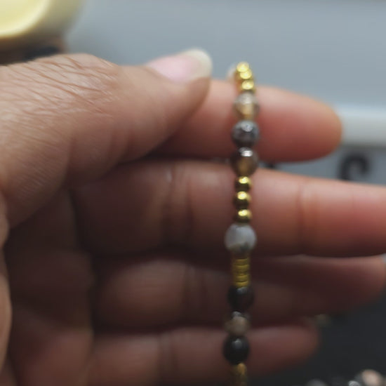 Dark, moody, and masculine — Stormwood brings together black and brown tones with your choice of silver or gold accents. Available in Shambala-inspired or classic bead finish.